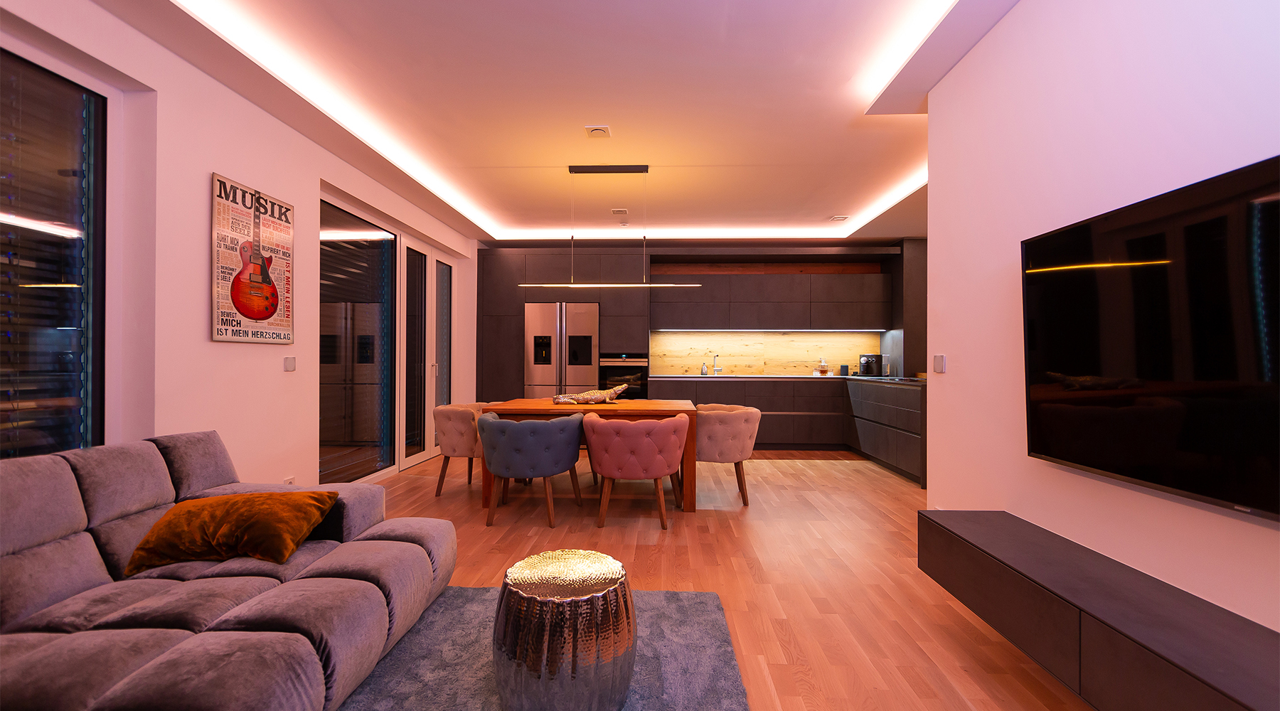 Transform your home with intelligent lighting that adapts to your lifestyle. From bright, energizing lights in the morning to soft, relaxing tones in the evening, your lighting responds automatically—or with a tap—creating the perfect ambience for every moment.